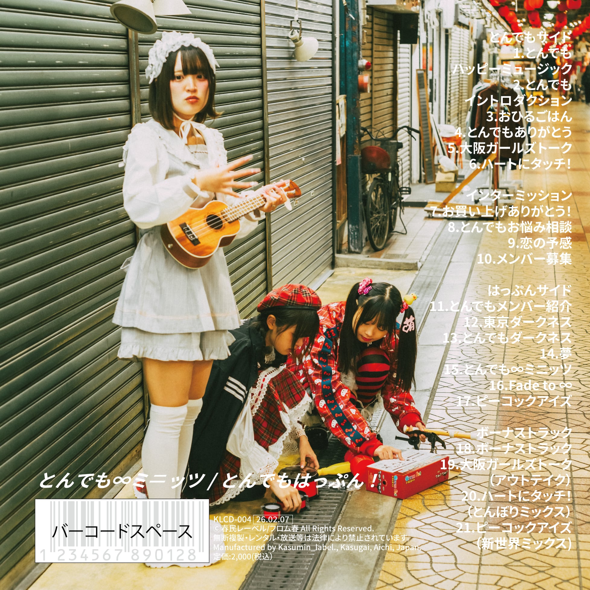 大阪発セルフプロデュースアイドル“とんでもはっぷん!”×春日井アイドルのヤバさしか無いコラボCD。チープなテクノパンクをベースにとんでもはっぷん!のゆるさが病みつきになる全8曲!合計21トラックのぶっとびアルバム。2/7日よりとんでもはっぷんライブ現場にて発売!通販は2/25全国発売!早く欲しい方に公式より限定発売!完売必至!サブスクに無い13トラックが聞けます!ジャケも最高です。
